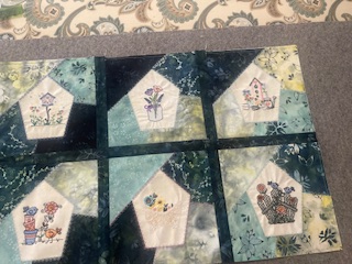Now that all of the blocks are complete, it is time to assemble the pieces. I am very happy with the thread colors, the variety, and how this is coming together.
